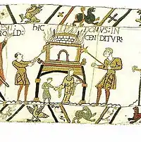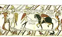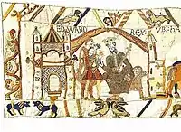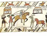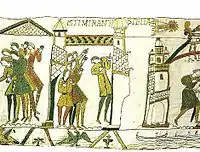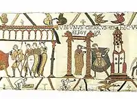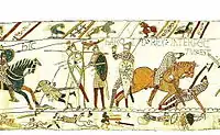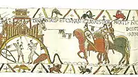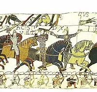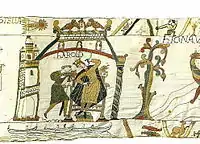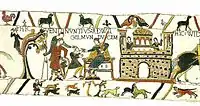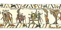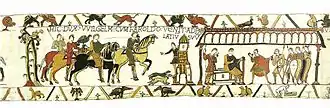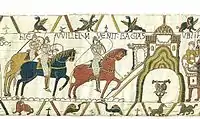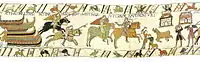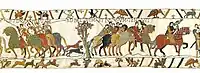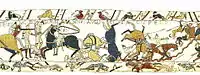 La tapisserie de Bayeux ou broderie de Bayeux[Note 1], successivement désignée « Telle du Conquest » (« toile de la Conquête ») par les chanoines de la cathédrale Notre-Dame de Bayeux, toilette de la Saint-Jean et toilette du duc Guillaume au XVIIIe siècle, ou encore tapisserie de la reine Mathilde au XIXe siècle, est une broderie (anciennement « tapisserie aux points d'aiguille ») du XIe siècle inscrite depuis 2007 au registre international Mémoire du monde par l'Unesco[2].