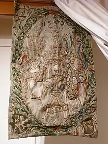 Cette petite tapisserie de 80 cm de long pour 48 cm porte la date de 1550 et les blasons des familles d’Oberkirch et de Knobloch. Elle est généralement identifiée comme un voile d’armoire eucharistique en raison de son sujet, deux anges tenant un ostensoir, le tout encadré d’une guirlande. Bien que la richesse des formes gothiques de l’ostensoir montre que l’auteur s’est inspiré d’un modèle de qualité, le tissage est en revanche médiocre[7].