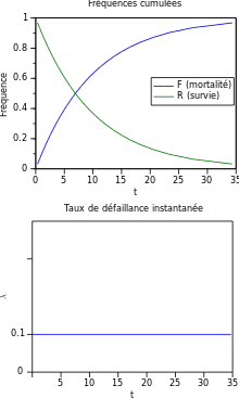 Dans ce cas, la probabilité de défaillance ƒ suit une loi exponentielle. Le taux de défaillance est alors l'inverse du temps moyen de fonctionnement avant panne MTTF (mean time to failure) :
