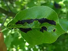 Dégâts sur feuille de poirier.