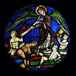 L'ensemble de la verrière une fois montée n'est pas encore rigide, au Moyen Âge on a besoin de faire une succession de panneaux à réunir avec une armature métallique. Une verrière est ainsi constituée de plusieurs panneaux de verre réunis par une armature de fer que le maître verrier doit commander à un serrurier. Au XIIe siècle, les armatures sont relativement simples, soit carré soit ronde. Avec le temps, la complexité des panneaux s'intensifia. Ceci correspond, outre les critères techniques, à la complexification de la pensée théologique[32]. Dès 1230, on arrive à des compositions très sophistiquées comme à la cathédrale Notre-Dame de Chartres, où la lecture de la verrière se fait en zigzag ou Boustrophédon. C'est un système qui d'ailleurs sera vite abandonné car le sens de la lecture se perd facilement. Parfois le sens change brutalement pour montrer un retournement dans l'histoire illustrée sur le verre. Toutes les vies de saints à Chartres sont réalisées ainsi, ce qui témoigne que la théologie y était très poussée à cette époque.