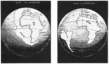 Dès 1596, dans son ouvrage Thesaurus geographicus, le cartographe anversois Abraham Ortelius remarque la ressemblance du tracé des côtes américaines et africaines. Il émet l’hypothèse que ces continents ont autrefois été réunis, et qu’ils ont été séparés à la suite de catastrophes : inondations et séismes. Francis Bacon souligne également cette complémentarité en 1620. Dans la Corruption du grand et petit Monde (1668) le père François Placet affirme que la séparation de l'Amérique du reste des continents s'est produite pendant le déluge universel[1]. En 1756, le théologien allemand Theodor Christoph Lilienthal (de) découvre la confirmation biblique de cette séparation en interprétant avec peu de vraisemblance un passage du livre de la Genèse[2].
