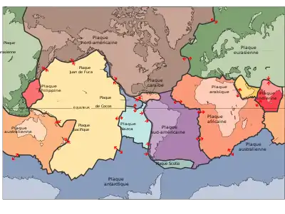 La lithosphère, coque externe rigide de la Terre constituée de la croûte et d'une partie du manteau supérieur, est subdivisée en plaques, dites tectoniques ou lithosphériques. Quinze plaques majeures ont été identifiées, auxquelles se rajoute une cinquantaine de plaques mineures. Ces plaques ont des mouvements relatifs variés, ce qui génère entre elles différents types de frontières : convergentes, divergentes ou transformantes. Au niveau de ces frontières se produisent de nombreux phénomènes géologiques tels que les séismes, l'activité volcanique, la formation de chaînes de montagnes et celle de fosses océaniques. La vitesse du mouvement relatif de deux plaques voisines varie entre 0 et 100 mm/an.