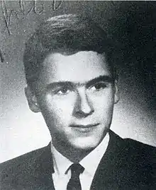 Après avoir obtenu un Bachelor of Arts de l’UW « avec distinction » en [49], Bundy se joint à la campagne de réélection du gouverneur républicain Daniel J. Evans (en)[50]. Étudiant à l'université, il suit comme son ombre l’adversaire de Evans, son prédecesseur Albert Rosellini (en), allant jusqu'à enregistrer son discours d'inauguration de campagne pour qu'il soit analysé par l’équipe de Evans[51],[52]. Après la réélection de Evans (en), il est engagé en comme assistant de Ross Davis, le président du Parti Républicain de l'État de Washington. Davis a une bonne opinion de Bundy, le décrivant comme étant « intelligent, agressif… et un croyant dans le système »[53]. Au début de 1973, malgré des résultats médiocres au test d'admission, Bundy est accepté aux facultés de droit de l'UPS et de l'université d'Utah, grâce aux lettres de recommandation (en) de Evans, Davis et plusieurs professeurs de psychologie de l'UW[54],[55].