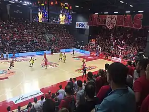 La salle accueille également des concerts et des conférences. Il comporte des chaises rouges et blanches et un motif à carreaux bleus. Outre le hall du bâtiment, il y a quatre vestiaires, une salle de sport, un vestiaire pour les officiels, des salles de presse, un salon VIP et une entrée avec des façades en verre.