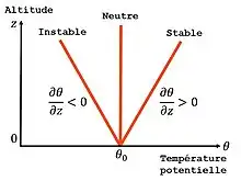 - si augmente avec l'altitude, on a une masse d'air stable.