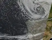 Dès le , des images prises par le satellite Météosat laissent apparaître la formation d'une profonde dépression dans l'Atlantique-nord, laissant présager d'une violente tempête susceptible de s'abattre sur le nord de l'Espagne et le sud de la France. Le creusement rapide du centre dépressionnaire conduit les services météorologiques espagnols puis français à placer en alerte maximale les zones menacées. Au cours des heures suivantes, la dépression devient ce que les météorologistes nomment un cyclone extratropical de type « bombe ». Ce terme ne doit cependant pas prêter à confusion avec les cyclones tropicaux dont la formation suit des règles différentes. Ainsi, les tempêtes de type « bombe » sont de dimension deux fois moins importantes que celle des cyclones tropicaux (500 km contre 1 000 km) et tirent leur énergie de l'atmosphère, alors que les cyclones tropicaux tirent leur énergie de la température de la mer. Enfin, les tempêtes surviennent principalement en hiver, alors que les cyclones tropicaux se produisent à la fin de l'été ou en automne.