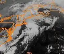 Image satellite de la tempête tropicale Alberto le 7 août 1988 au large du cap Cod. | ||||||||