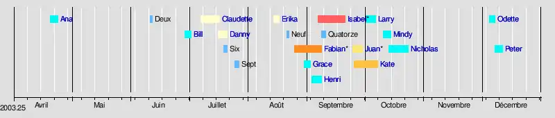 | Saison cyclonique 2003 dans l'océan Atlantique nord | |||||||||||||||||||||