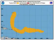 Après un nouveau changement de direction vers le nord-ouest, Philippe est passé sur Barbuda vers 22 h UTC le alors que cette île et Antigua étaient en alerte de tempête tropicale[10]. Il est ensuite passé près des îles de Saint-Martin, d'Anguilla et des îles Vierges britanniques avant de tourner vers le nord en direction des Bermudes qui ont été mises en alerte cyclonique.