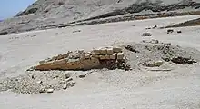 À mi-chemin du temple principal, les restes d'une station de la barque ont été retrouvés, un petit temple pour la barque de culte qui était transportée au temple principal lors de la fête de la vallée. Hormis un bloc de fondation, aucun élément structurel n'a survécu in situ, mais les fosses de fondation creusées dans la roche fournissent une indication de la taille et de l'orientation du temple. Il mesurait environ 11 × 16 mètres et reposait exactement sur les axes de l'ascension. Une fosse de fondation était encore intacte et contenait entre autres des outils, des récipients et des paniers[7].