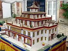 Lama Gyourmé s'est inspiré du monastère de Samyé, premier temple du Tibet, construit au VIIIe siècle par Padmasambhava et qu'il a visité à trois reprises. Il en a dessiné les plans, construit la maquette, avec l'aide d'un architecte pour les normes techniques.