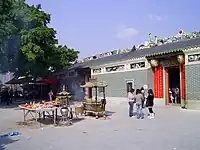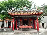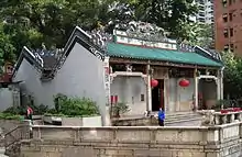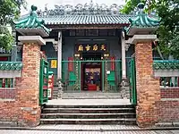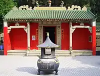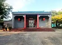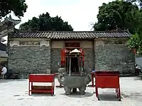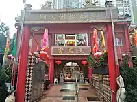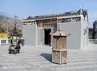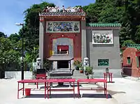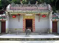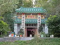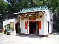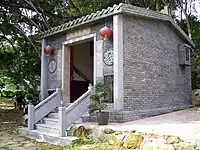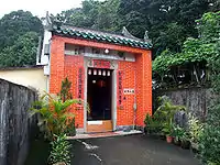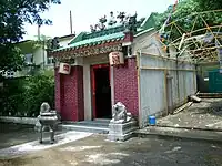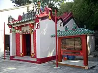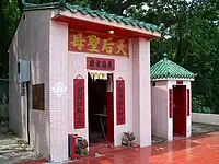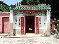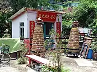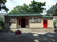 Temple de Tin Hau de Tai Tseng Wai (大井圍天后古廟, 大井天后古廟) Construit en 1688[68]. Restauré en 1981. Le temple est partagé par les trois villages de Tai Tseng Wai (en), Ng Uk Tsuen et Shing Uk Tsuen (en)[69].  |