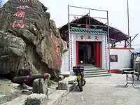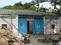 Temple de Tin Hau de Sha Lo Wan (沙螺灣天后宮) Construit en 1919. Situé à gauche du temple Ba Kong, dédié à Hung Shing. Un mur relie les deux temples sur la façade[17]. (Vu de face, le temple de Tin Hau se trouve à droite).  |