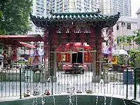 Temple de Tin Hau de Shau Kei Wan (zh) (筲箕灣天后廟) Le temple d'origine, construit en[8], est détruit par un cyclone en 1872. Un nouveau temple est érigé sur le site l'année suivante, en 1873[9]. Situé à l'origine sur une pente, sa façade fait face à la mer. Rénové en 1876, 1902, 1920, 1948 et 2005. Géré par le Chinese Temples Committee (en)[10]. L'intérieur du temple peut être visité via Google Street View (en).  |