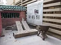 Temple de Temple de Tai O San Tsuen (zh) (大澳新村天后廟), ou Temple de Tin Hau de Yim Tin Tin (鹽田天后古廟) Construit en 1644[15], au début de la période Qing, réparé en 1838, 1892, 1895, 1946 et 1972[14].  |