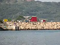 | Sur le brise-lames principal de l'abri anti-typhon de Shaukeiwan (en). Il n'est accessible que par bateau 22° 17′ 05″ N, 114° 13′ 58″ E  |