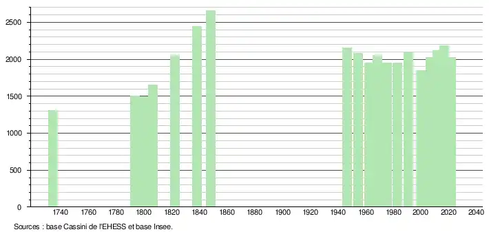 - Fiches Insee - Populations légales de la commune pour les années 1734, 2006, 2007, 2008, 2009, 2010, 2011, 2012, 2013, 2014, 2015, 2016, 2017, 2018, 2019, 2020 et 2021.