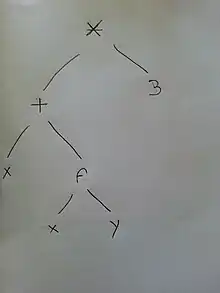 Un terme peut être vu comme un arbre[1] étiqueté (à chaque nœud est associé une étiquette prise dans la signature) orienté (les fils d'un nœud sont ordonnés de droite à gauche). Il y a de plus une contrainte, à savoir que le nombre de fils d'un nœud est donné par l'arité de l'étiquette du nœud. On parle de représentation arborescente d'un terme.