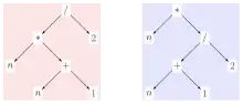 Il s'agit du terme de gauche de la figure ci-dessus. Il s'écrit en notation récursive préfixée, en notation polonaise et en notation infixe.
