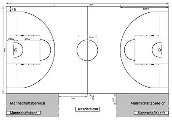 ![]() Plan d'un terrain de basket-ball réglementaire FIBA. |