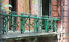 L'utilisation de ferronneries pour les grilles des fenêtres, les balcons et le portail d'entrée confère également au bâtiment une certaine esthétique ornementale.