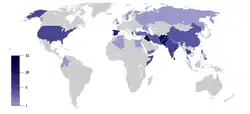 Le conflit qui oppose l'Inde et le Pakistan se reporte régulièrement sur Internet depuis 2001, et se manifeste par des défacements de sites Internet[59] et par la diffusion de virus informatiques.[60]