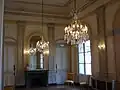 - Au-dessus du vestibule au premier étage se situe un salon de réception donnant sur la Rue de la Comédie.