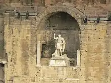 Le théâtre antique d'Orange, construit sous le règne d'Auguste au Ier siècle av. J.-C. par les vétérans de la IIe légion de Jules César, est un des théâtres romains les mieux conservés au monde. Il dispose encore d'un impressionnant mur extérieur avec l'élévation d'origine (104 m de long pour 35 m de haut).