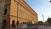 Le mur extérieur ou postcænum est long de 104 m et haut de 35 m[1]. « C'est la plus belle muraille de mon royaume », dit Louis XIV lors d'une visite[2]. À l'origine, il était précédé d'un portique, dont il subsiste une arche du côté ouest. D'un aspect très sobre, en grand appareil de pierre, la façade est divisée en trois niveaux. Au rez-de-chaussée, trois portes rectangulaires — la « porte royale » au centre, les deux « portes des hôtes » sur les côtés — sont séparées par une série d'arcades.