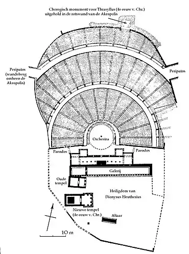 - (de) Cet article est partiellement ou en totalité issu de l’article de Wikipédia en allemand intitulé « Dionysostheater » (voir la liste des auteurs).