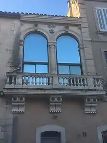 Il doit son nom au balcon sculpté par Lucien Vernet au XIXe siècle qui orne sa façade.