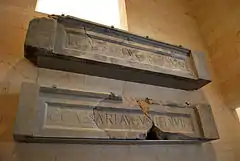 - Un bas-relief sculpté de Rhéa Silvia, mère de Romulus et Rémus.