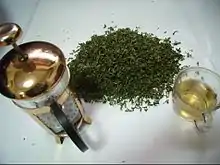 L’infusion se fait aussi de feuille entière[17], séchée à l’air ou à la poêle[18]; ou bien encore en remplaçant l'eau par du saké pendant 4 jours[19].