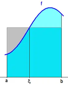 - Graphiquement, une interprétation de ce théorème est que l'aire algébrique sous la courbe représentative de f est égale à celle d'un rectangle de base [a , b], et de hauteur un point moyen de la courbe.