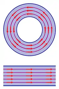 Il étudie une question analogue à celle du mouvement de la surface d'une tasse de café. Que peut-on dire, en général, des trajectoires d'une surface animée par un courant constant[12] ? Poincaré découvre que la réponse réside dans ce que l'on appelle maintenant les propriétés topologiques de la zone contenant la trajectoire. Si cette zone est compacte, c'est-à-dire à la fois fermée et bornée, soit la trajectoire s'immobilise, soit elle s'approche de plus en plus d'une boucle qu'elle parcourt indéfiniment[Note 3]. Poincaré va plus loin, si la zone est de même nature que celle d'un disque, comme c'est le cas pour la tasse de café, il existe nécessairement un point fixe. Ce point fixe est invariant par toutes les fonctions qui, à chaque point de la surface initiale, associent sa position au bout d'une période t. Si cette zone correspond à une bande circulaire ou si elle n'est pas fermée[Note 4], ce n'est pas nécessairement le cas.