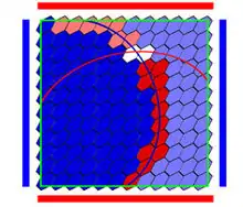 Si l'un des points de cette subdivision est un point fixe, l'existence du point fixe est prouvée, sinon, on colorie par .
