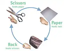 • les jeux évolutifs qui présentent un comportement cyclique (comme le jeu pierre-papier-ciseaux) où les proportions des stratégies en compétition évoluent continuellement dans le temps au sein de la population globale.