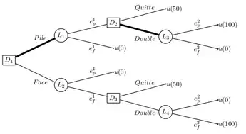 Dans un tel cadre on peut formaliser un problème de décision séquentielle dans l'incertain comme suit. L'ensemble des événements est constitué d'une suite de partitions avec de l'événement certain , étant une sous-partition de pour tout . Une stratégie est constituée par la donnée, pour chaque , d'une décision conditionnelle pour chaque événement , ainsi que d'une décision initiale à .