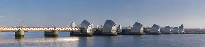 - (en) Cet article est partiellement ou en totalité issu de l’article de Wikipédia en anglais intitulé « Thames Barrier » (voir la liste des auteurs).