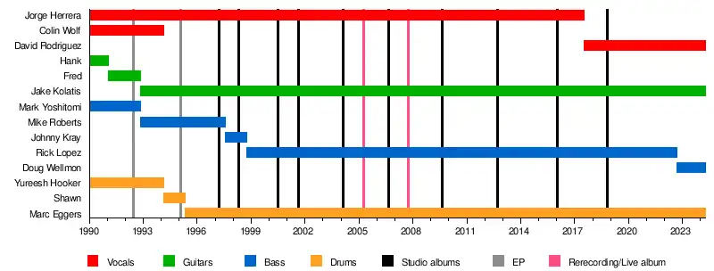 Après leur tournée internationale, Dave est remplacé par Rick Lopez du groupe, Manix. La formation se solidifie et continue encore en date. La fin du millénaire, 1999, assiste à la sortie de la compilation Early Years 1990–1995[3]. Le groupe continue ses tournées dans les années 2000[2] et produit plusieurs albums. Ils tournent avec plusieurs groupes comme The Exploited, GBH, Cockney Rejects, Slaughter and the Dogs[3] et English Dogs.