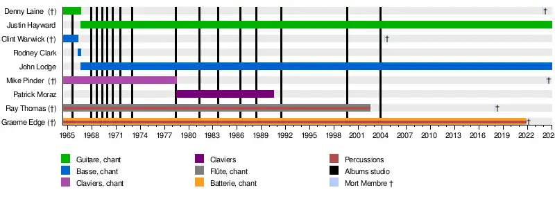 - Graeme Edge (†) - batterie, percussions, chant (1964-2021), mort le 11 novembre 2021
