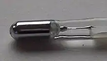 Le thermomètre à mercure a été inventé par Gabriel Fahrenheit en 1724[1]. Son fonctionnement repose sur du mercure contenu dans un tube de verre. Le volume du mercure, donc la longueur de la colonne dans le tube, est fonction de sa température. On peut lire cette dernière grâce à des graduations inscrites le long du tube. Pour augmenter la sensibilité du thermomètre, une ampoule plus large que le tube est formée à l'une de ses extrémités et remplie de mercure ; les petites variations de volume du mercure se traduisent alors par de grands déplacements de l'extrémité de la colonne. L'autre extrémité du tube est remplie d'azote, à une pression plus faible que la pression atmosphérique.