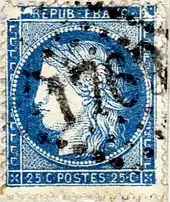 Nouvelle série Cérès, IIIe République, 25 centimes bleu
