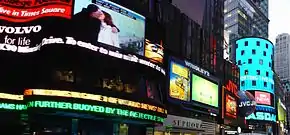 Un exemple frappant est le panneau publicitaire du NASDAQ MarketSite situé au 4 Times Square sur la 43e rue. Dévoilé en janvier 2000, sa construction a coûté plus de 37 millions de dollars[7]. Cette publicité haute de 36,6 mètres était le plus grand affichage à LED du monde lors de son installation[7].