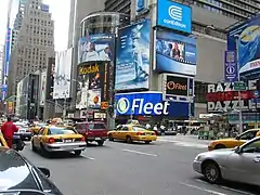 Les théâtres de Broadway et le nombre important de néons publicitaires ou autres écrans géants en ont fait un des symboles de New York et représentatif de l'urbanisme de Manhattan. Times Square est le seul quartier dans lequel on demande aux gérants et aux propriétaires d'afficher des publicités lumineuses. Les entreprises achètent souvent ces enseignes pour plusieurs années (les contrats vont jusqu'à douze ans).