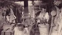 - La clouterie et la taillanderie : après l'apparition des hauts-fourneaux, les ferrons se spécialisent dans la clouterie[34] et, au début du XVIIIe siècle, elle atteint un niveau national[35]. La taillanderie se développe entre Saint-Quentin-les-Chardonnets et Yvrandes grâce à l'énergie hydraulique disponible[36]. Dans la deuxième partie du XVIIIe siècle, la forte demande en clouterie de marine[37] déplace le centre de gravité de la clouterie de Chanu vers Saint-Cornier-des-Landes et Beauchêne, impose une génération de marchands capables de mobiliser des sommes importantes, de négocier avec les forges et de faire travailler de nombreux cloutiers.