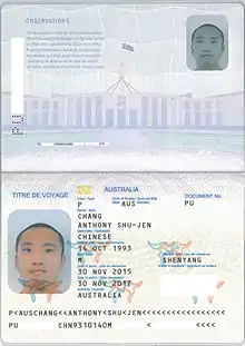 - Australian Convention Travel Document. Ce document ne permet pas au réfugié de retourner en Australie ; pour cela, un formulaire de demande de visa doit être obtenu[3].