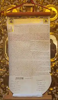 Tomos d'autocéphalie de l'Église orthodoxe d'Ukraine, signé par le patriarche œcuménique Bartholomée Ier le 5 janvier 2019.