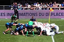 Le Racing Métro remporte (22-32) le derby francilien sur la pelouse du Stade français, ce qui lui permet de revenir dans les places qualificatives pour les phases finales[43]. Oyonnax s'impose sur sa pelouse avec le bonus offensif contre Grenoble (40-13), glanant de précieux pour le maintien. Enfin, Montpellier prend la tête du classement[44] après sa victoire 43-27 contre Bayonne.